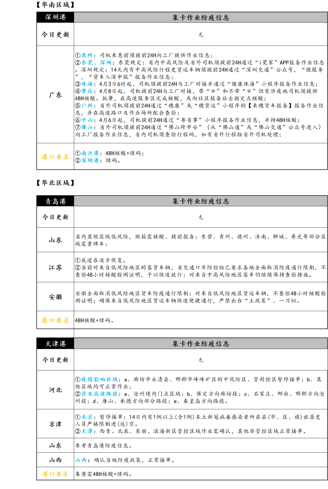 6/9主要港口集卡作业相关防疫信息汇总
