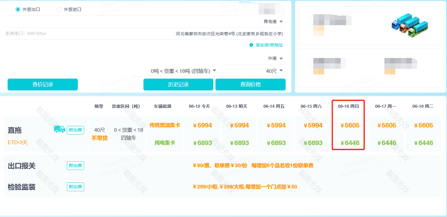 进青岛港直拖价格下调,支持的货源地区包括河北省廊坊市;