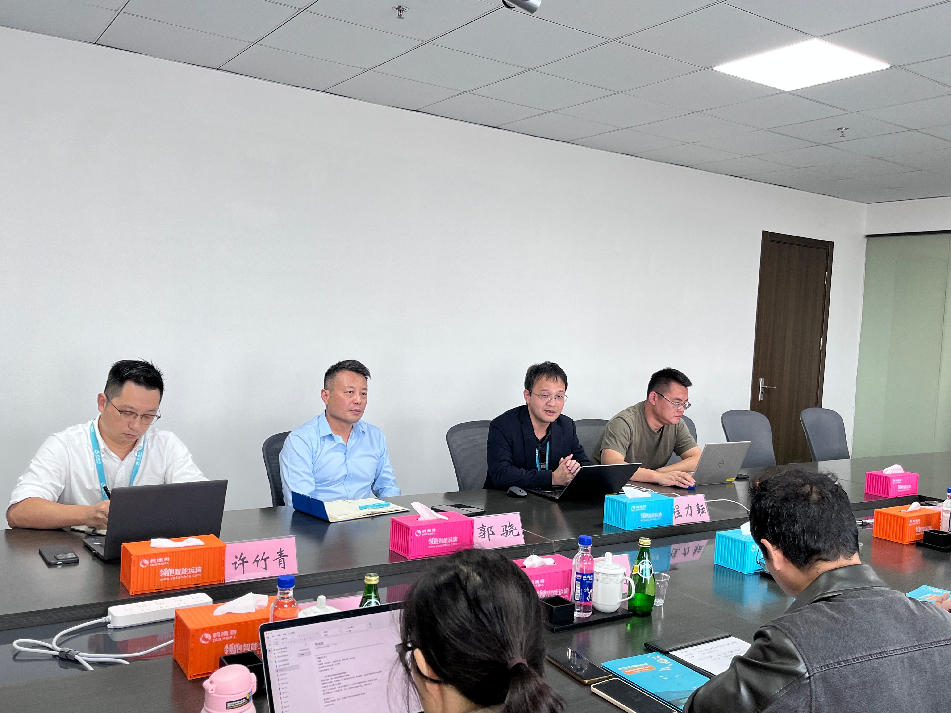 本次调研的围绕着绿色供应链的标准制定展开,郭骁副总裁和程力耘博士向客人介绍近年来鸭嘴兽在ESG方面的探索与实践,致力于为货主企业提供创新型绿色供应链服务。重点介绍了鸭嘴兽在新能源重卡领域的布局和发展情况,鸭嘴兽通过精益化运营有效降低电动重卡营运成本,成功实现商业化运营。同时分享了鸭嘴兽在华南为奥马电器量身打造的电卡运输方案。