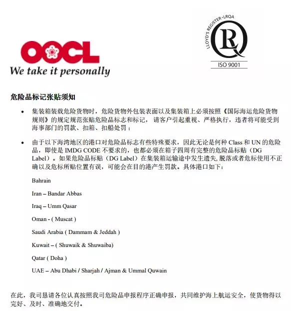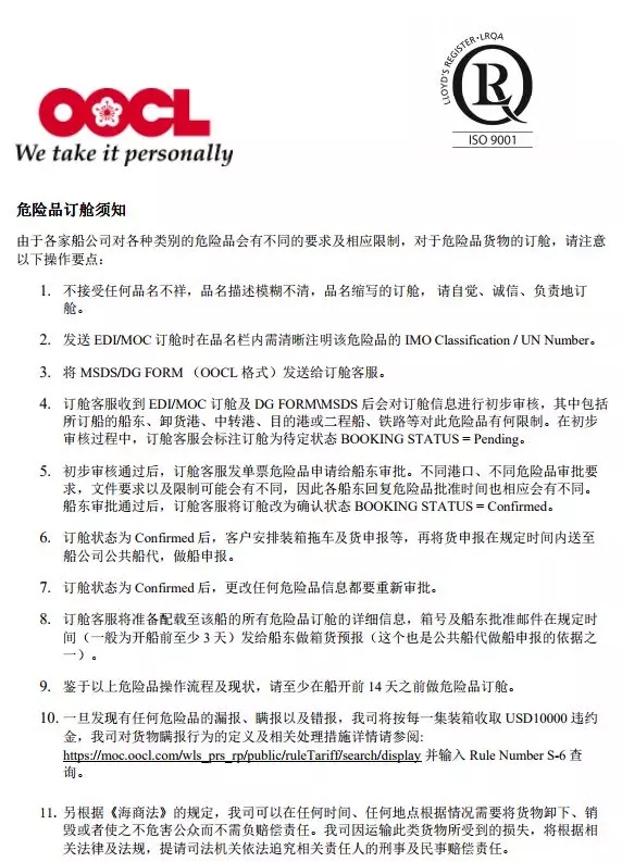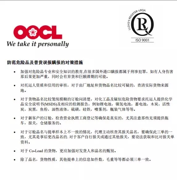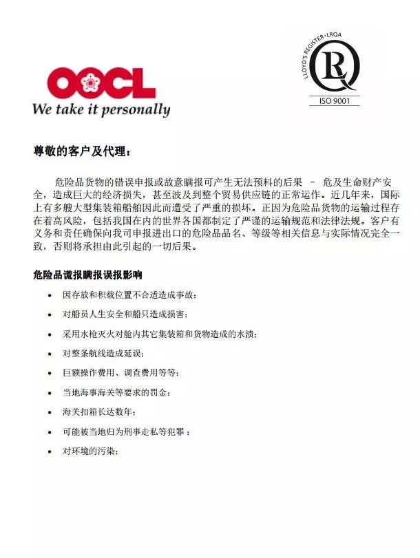 东方海外的通知,除了告知危险品订舱管理办法,也对危险品瞒报的影响、以及严重后果,做了详细的告知。建议货主货代们都再重温一下,看完保证你哪怕有一丝侥幸的小念头也立马会灭了!