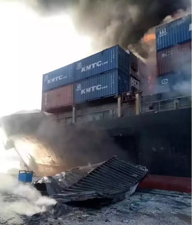 港口方面还表示,货物所有人和承运人未预先通知港口管理局“有危险货物存在”。调查人员初步调查发现,总计有18个集装箱装有化学品,其中13个集装箱的含有次氯酸钙,5个集装箱含有石蜡。但托运人没有申报危险货物,失火前,这些货物还被认为是玩具娃娃!本次爆炸和火灾造成至少35个集装箱直接损毁。