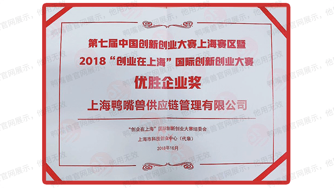 2018年10月,鸭嘴兽获第七届中国创新创业大赛上海赛区暨